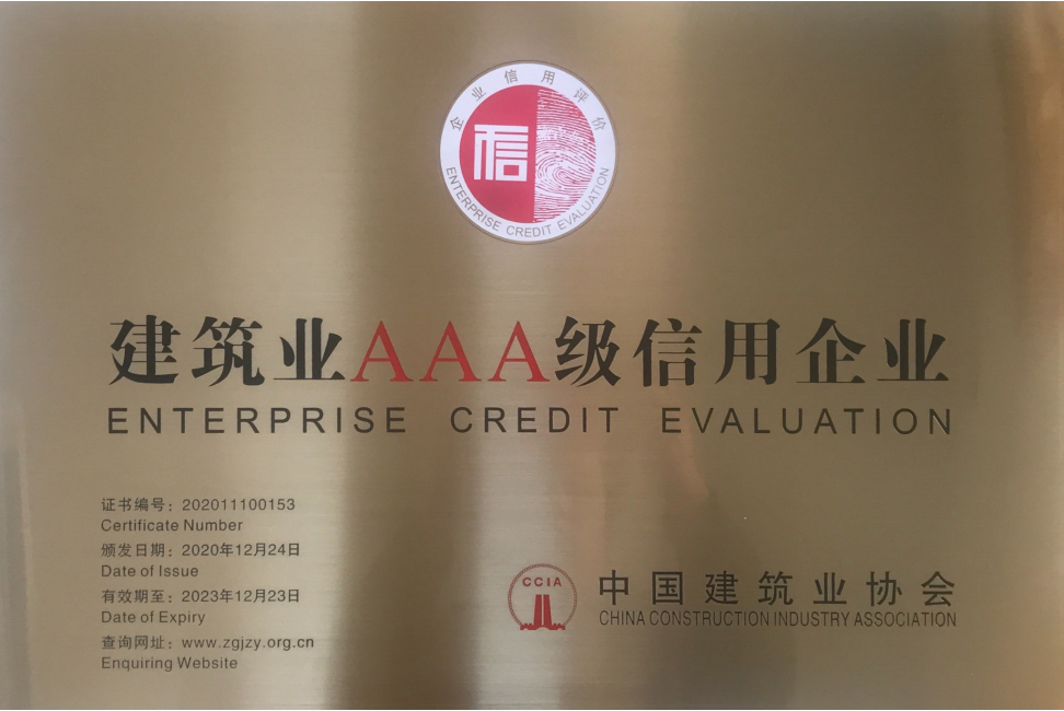 2021年年初之際,經過相關行業協會推薦、專家組初審、中國建筑企業協會終審的“2020年度全國建筑業AAA級信用企業”結果揭曉,福建省泉州市第一建設公司被授予“2020年度全國建筑業AAA級信用企業”稱號。